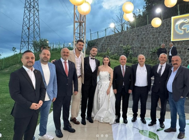 直播吧7月5日讯今日申京哥哥(上图黑衣)大婚,申京到场参与庆祝。