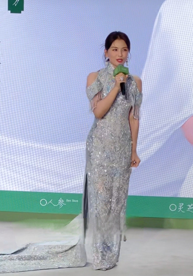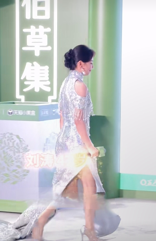 刘涛穿闪片露肩中式礼服出席活动, 精致流苏设计, 优雅又吸睛