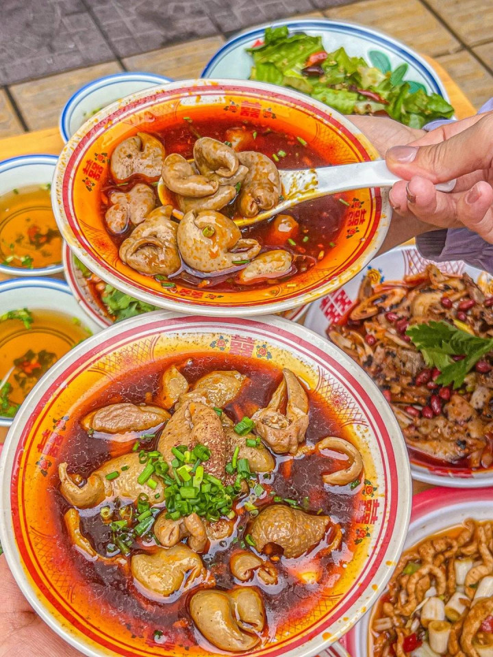 景区门口有几家农家乐,特色菜有老腊肉、野菜煎蛋、柴火豆花等,价格实惠,人均40元至50元。不想在景区吃,也可以自带干粮,找个溪边野餐。当然了,下山必须奔赴市区,必吃江油肥肠配米饭,街边小店闭眼冲,都不得踩雷。