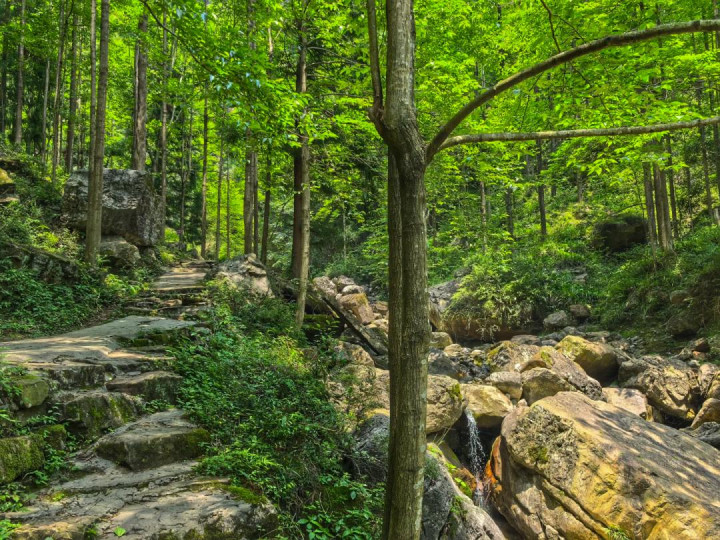 轻松休闲线(全程平缓好走,3-4小时),大致路线为停车场-藏王谷入口-观鸳鸯瀑布-赏双色瀑布-到藏王庙歇脚-漫步广陵峡看峡谷风光-原路返回停车场。