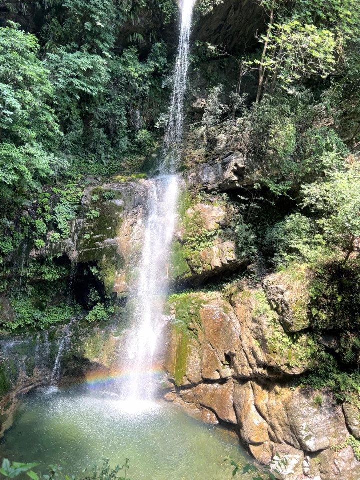 位于龙门山脉的重华镇老君山山高谷深,落差大,瀑布成群,特别是夏季汛期来临,水量充沛,更是避暑玩水胜地,当然春秋出游更巴适,不晒不热,徒步游玩刚刚好,途中还看到有团队玩瀑降。