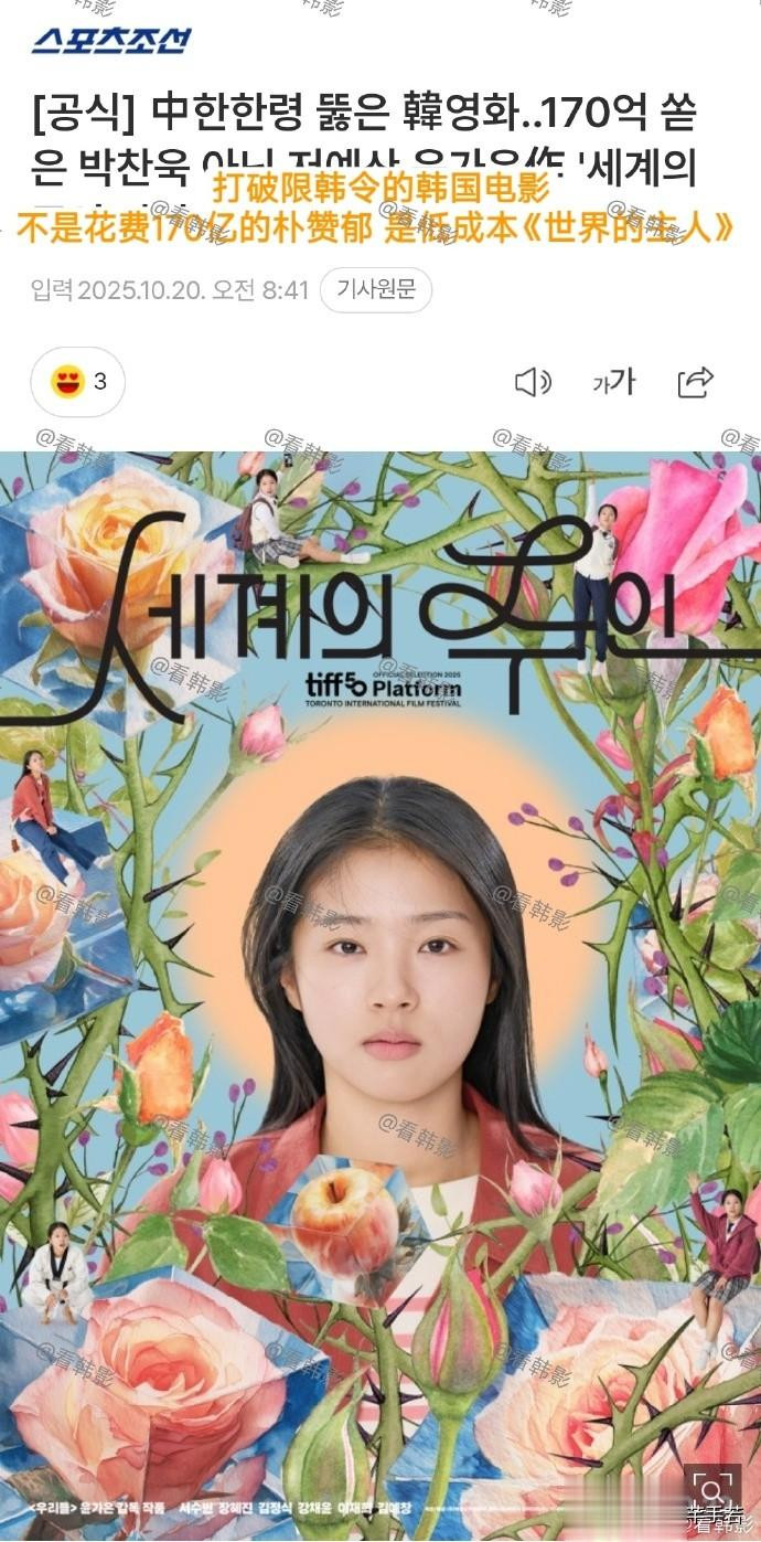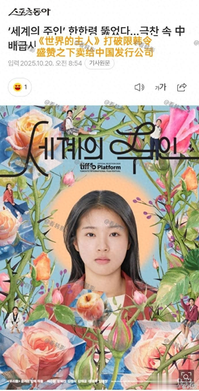 韩媒天天说打破了限韩令,但至今没有哪怕一个KPOP爱豆能来中国开演唱会,所以,不要看他们说了什么,而是要看我们做了什么,事实证明,限韩令没有被打破,甚至连松动的迹象都没有,至于韩影《世界的主人》是不是真的卖给了中国发行方也不重要,重要的是这部电影能不能在中国上映,个人觉得,肯定不能,限韩令还是得继续才行。