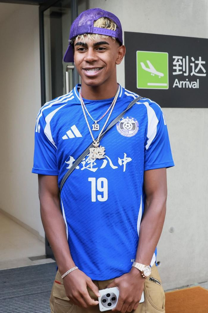 身穿中国校园足球队伍的球衣,拥有当今足坛第一身价的17岁天才球员拉明·亚马尔7月8日抵达上海,开启首次中国行。