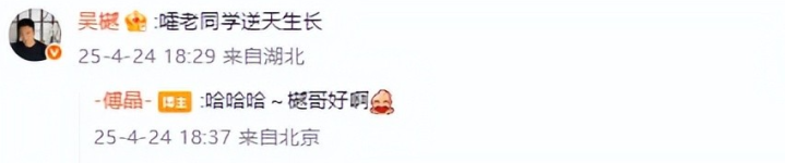 傅晶则在下面以“哈哈哈”回应,且亲切地喊老同学为“樾哥”,看起来很是俏皮。