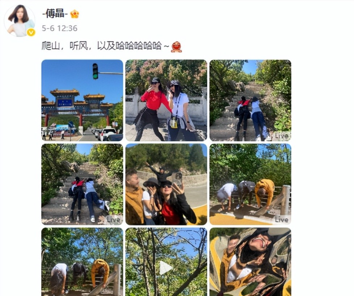 5月6日,付晶曾发布动态:“爬山,听风,以及哈哈哈哈哈~”
