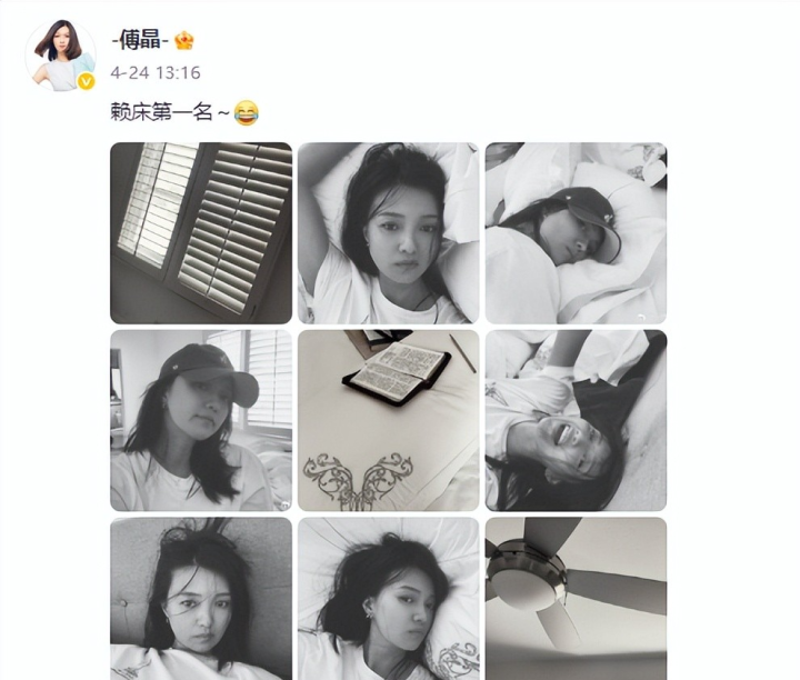 之前她曾因为“赖床”,而自拍了一组黑白色风格的照片,当时著名演员吴樾就在下面评论:“嚯,老同学逆天生长。”